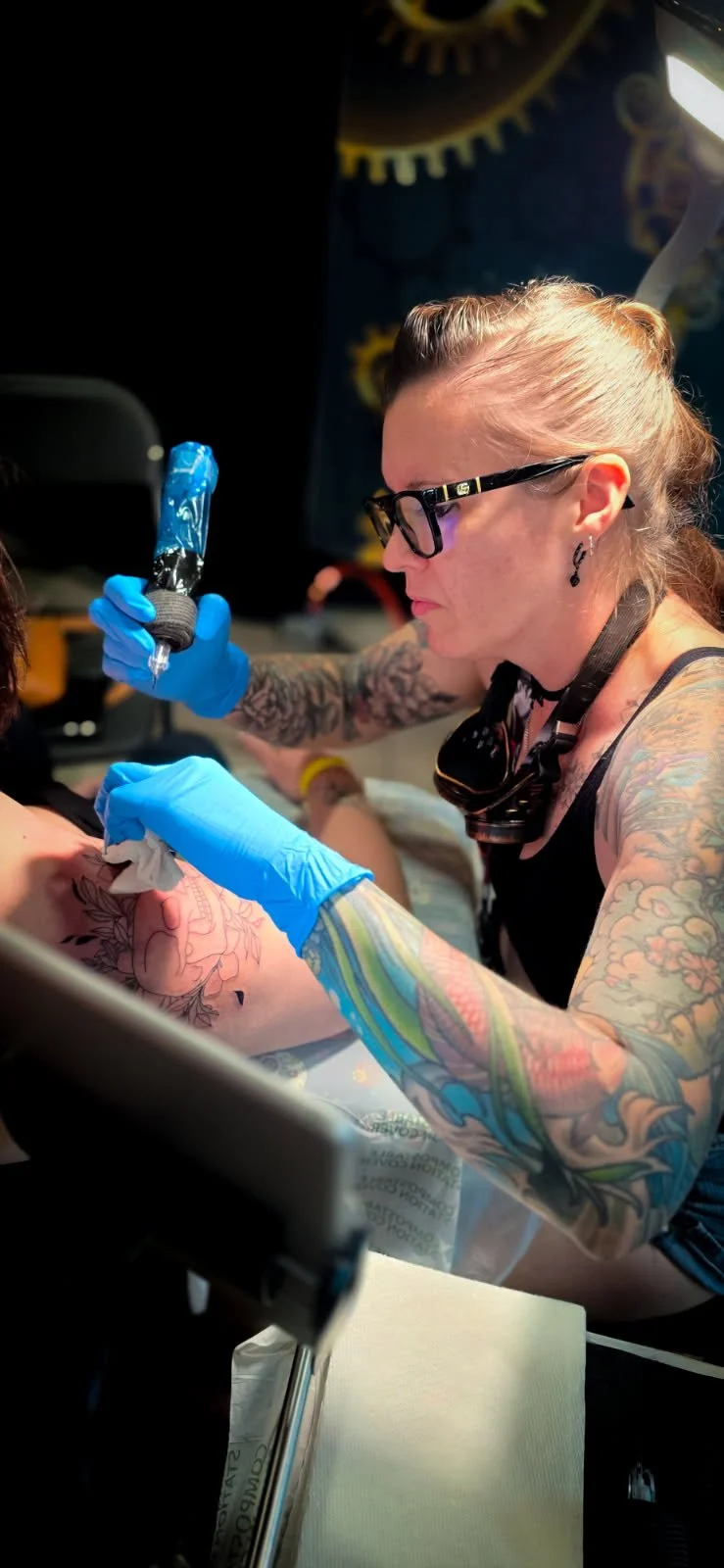 My name is Joy, and I am the sole artist at Ink Joy Tattoo. I have been tattooing since 2021, working in many different tattoo styles, including colour, black and grey, fine linework, coverups, and more. In addition to tattooing, I am also an artist in many different mediums, specializing in metal work .